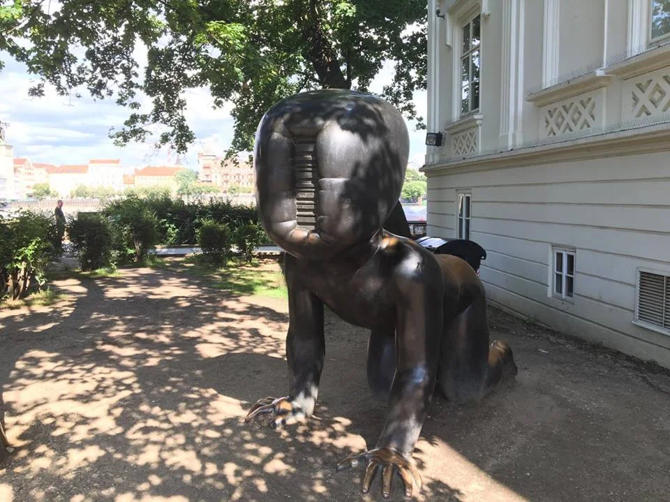 I walked along the river on my way to the Charles Bridge and stumbled upon one of the most frightening things I've seen on my journey so far. Some of you may be familiar with the freaky baby heads behind the Museum of Fine Arts in Boston. I found something on the next level.